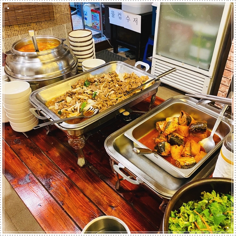 금요일과 토요일 메뉴의 경우에는 한식이 아닌 돈가스나 스파게티 그리고 수제고기완자 스프 등 양식 메뉴로 일부적인 대체가 있을 수 있으니 참고하시고 방문을 하시길 바랍니다. 코로나 시국으로 힘든 시기에 6,500원으로 많은 음식들을 무제한으로 먹을 수 있는 점이 굉장히 이 가게의 장점이 아닌가 싶은데요. 강동에 거주를 하고 계신 분들은 한번쯤 방문을 하는 것도 좋은 선택이라고 생각이 듭니다.